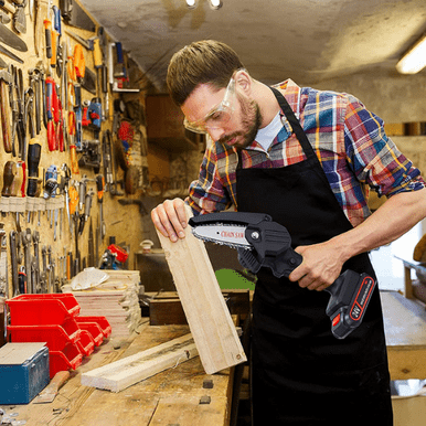 The Mini Cordless Rechargeable Chainsaw for Pruning and Wood Cutting is designed for effortless, one-handed operation. Its lightweight and ergonomic design reduce fatigue, enabling you to work comfortably for longer periods. Whether you're trimming branches, cutting firewood, or completing DIY tasks, this tool offers the flexibility and convenience needed for precise cuts. -