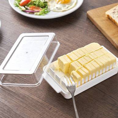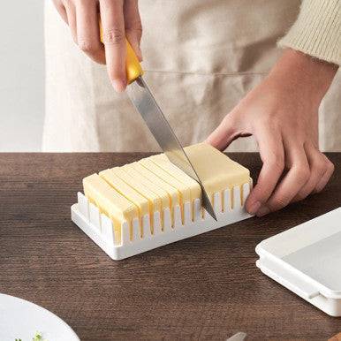 Enjoy a practical and space-saving solution for storing and slicing butter with the Butter Storage Box with Cutting Groove and Transparent Lid!