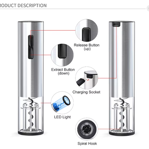 Experience seamless wine bottle opening with the Electric Wine Opener, designed for effortless cork removal in seconds.