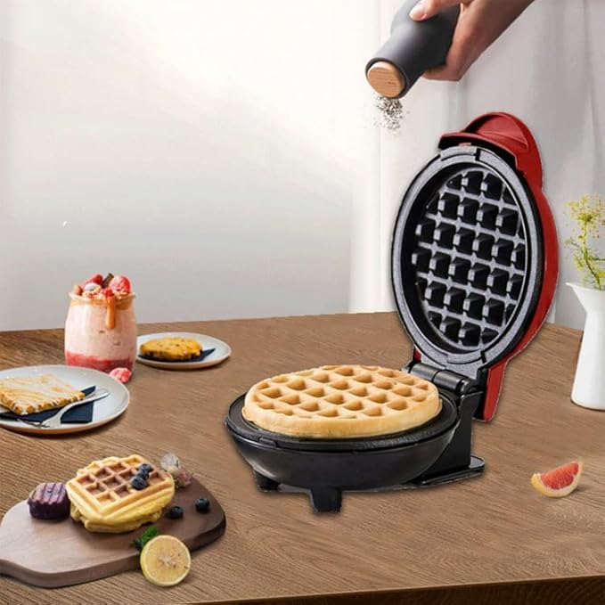 • Compact & Space-Saving – The Mini Non-Stick Waffle Maker fits seamlessly into any kitchen, making it ideal for apartments, dorms, and travel.