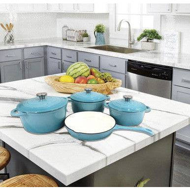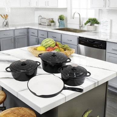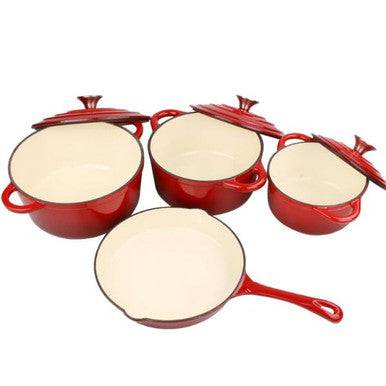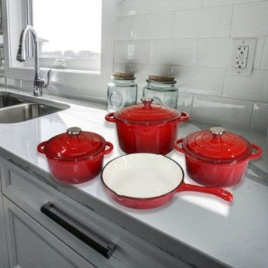 Premium 7 Piece Enamel Cast Iron Cookware Set for All Heat Sources - Mega Cart
