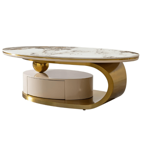 The PrimeNest - Colorado Coffee Table is a sophisticated blend of contemporary design, functionality, and timeless elegance. Designed to be the focal point of your living space, this exquisite coffee table seamlessly integrates modern aesthetics with practical storage solutions. Featuring a luxurious marble-finish tabletop, sleek gold-toned accents, and a discreet storage compartment, the PrimeNest - Colorado Coffee Table enhances both style and organization in your home.
