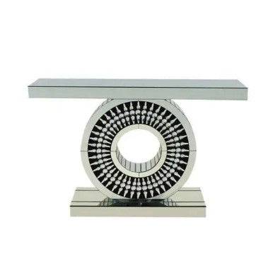 Transform your living space with the striking PrimeNest Glam Teardrop Console Table, a masterpiece of contemporary elegance and Hollywood-inspired glamour. This stunning piece combines a mirrored finish, a unique geometric design, and sparkling crystal accents to create a sculptural statement that enhances any room.
