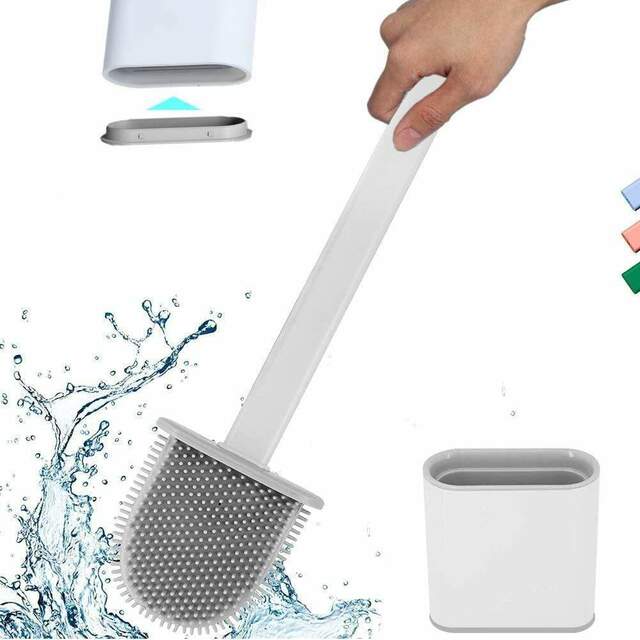 Maintain a sparkling clean, hygienic bathroom with the Silicone Toilet Brush with Holder, the perfect cleaning tool for your home!