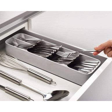 Maximize your kitchen drawer space with the Compact Cutlery Organizer. This innovative and space-saving design keeps your cutlery neatly organized while freeing up valuable drawer space for other kitchen essentials. Perfect for smaller kitchens or anyone looking for smart storage solutions.