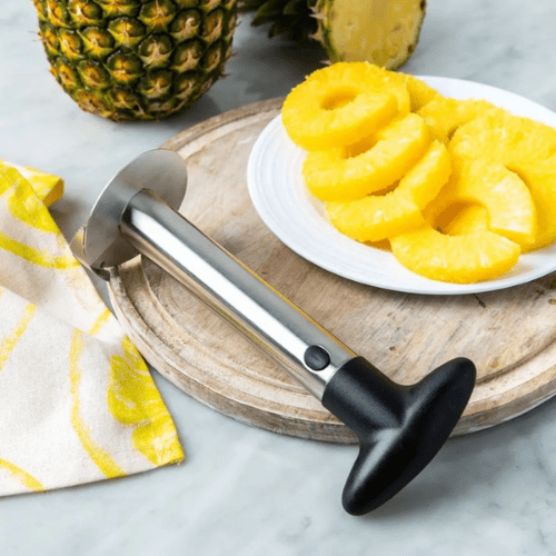 - Effortless Coring & Slicing – The Stainless Steel Pineapple Corer & Slicer quickly removes the core and slices pineapples into uniform rings, saving you time and effort in the kitchen.