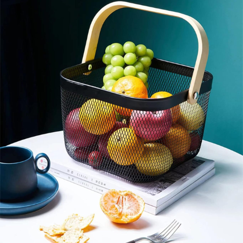 Upgrade your home or office organization with the Metal Mesh Storage Organizer Basket with Wooden Handle, a stylish and functional solution for all your storage needs. Designed with durable metal mesh and a smooth wooden handle, this basket seamlessly blends modern aesthetics with practicality.