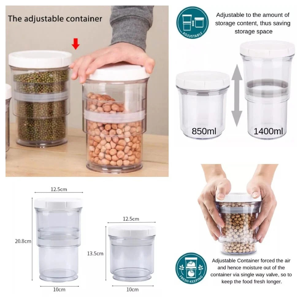 The Adjustable Storage Container is the smart solution for flexible food storage. Designed with a customizable, expandable design, it lets you adjust the size based on your storage needs whether you’re organizing snacks, pasta, dry goods, or leftovers.